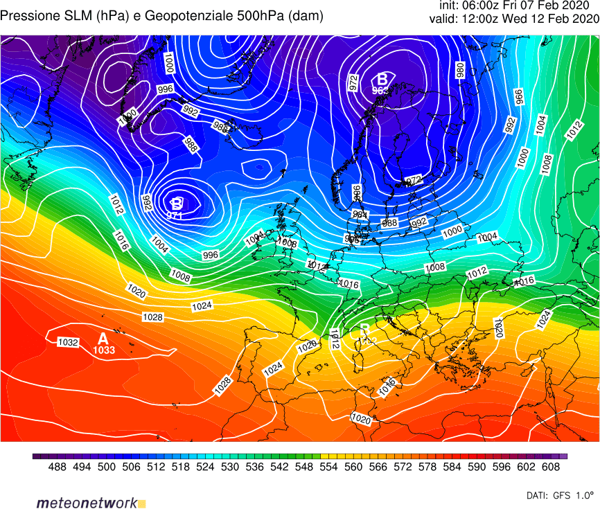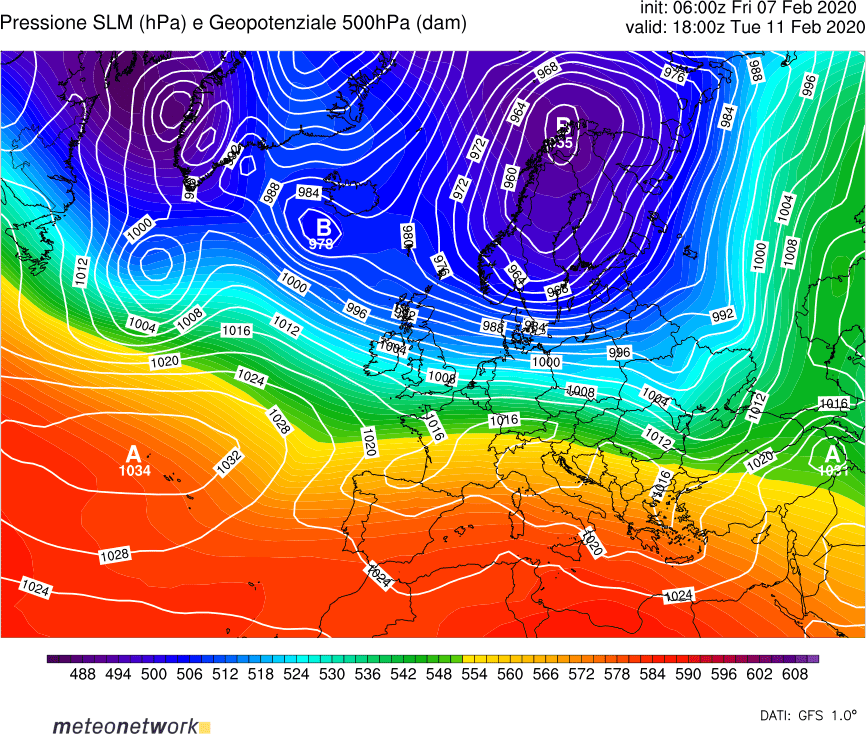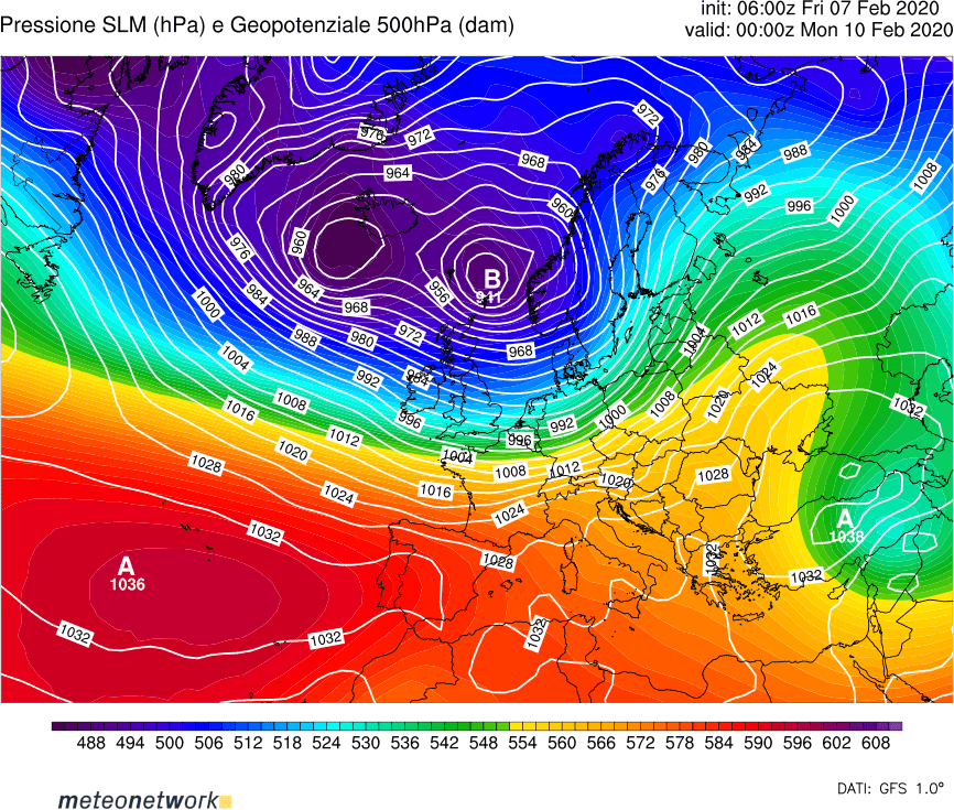 In linea di tendenza da martedì 11 febbraio sarà possibile un graduale spostamento del vortice polare dall’Islanda in direzione della Penisola Scandinava, con l’abbassamento di latitudine del flusso perturbato atlantico verso il Golfo di Biscaglia e il Mar Mediterraneo centro-occidentale.
