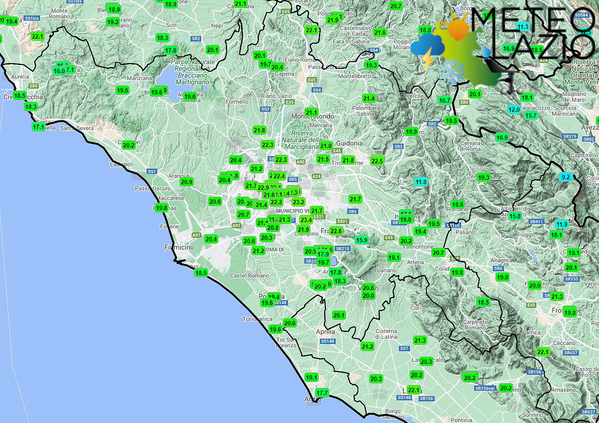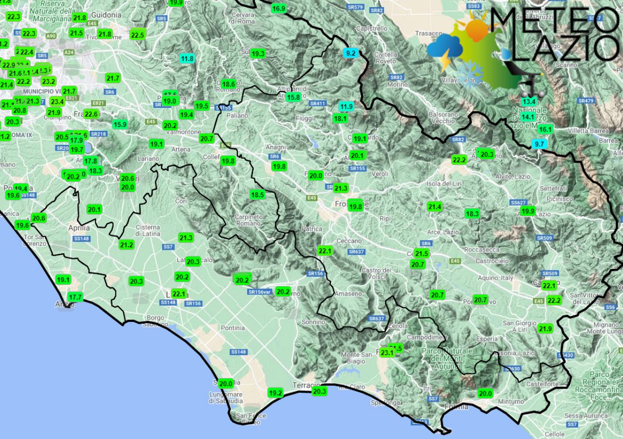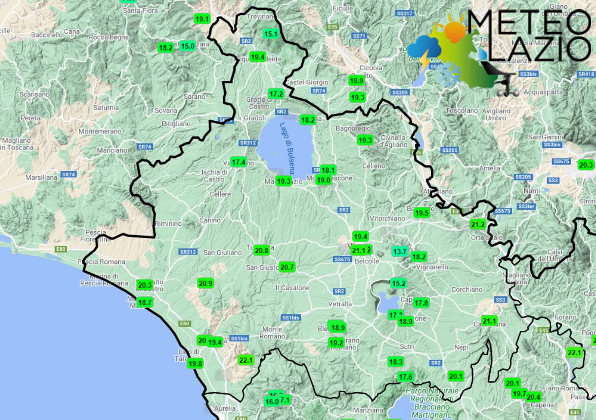 Temperature altrettanto gradevoli e temperate pure nel Lazio, lungo le zone costiere con i valori massimi diffusamente superiori ai 20°C lungo le località tirreniche e non solo.