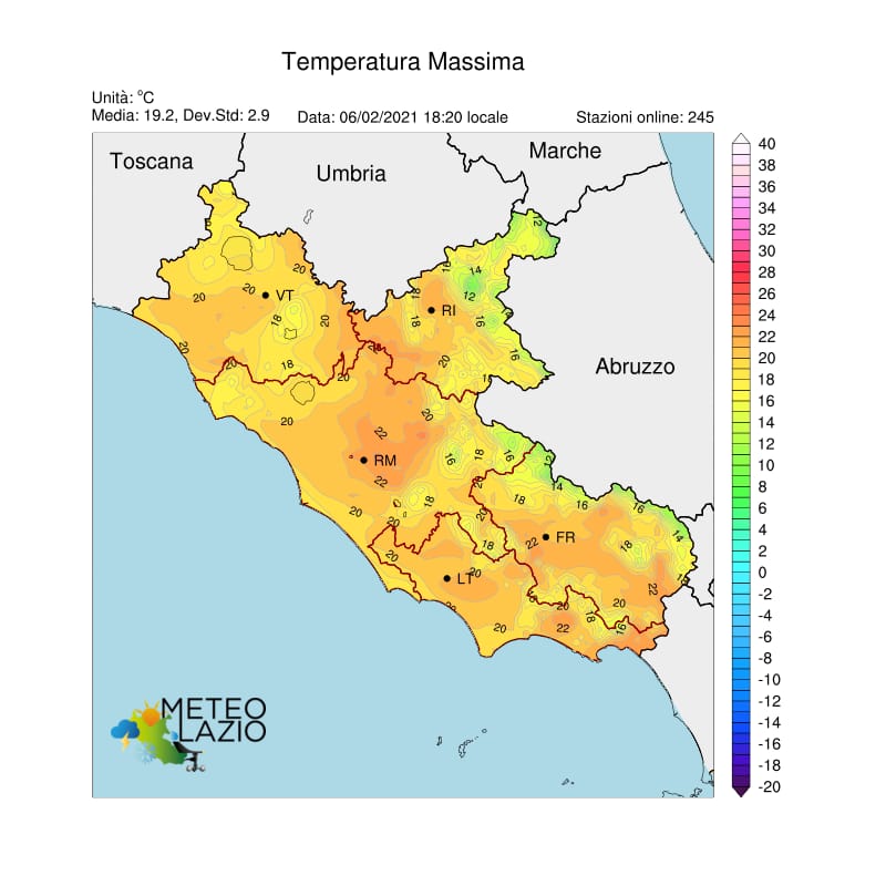Il riepilogo delle temperature massime rilevate nella giornata di sabato 06 febbraio 2021: