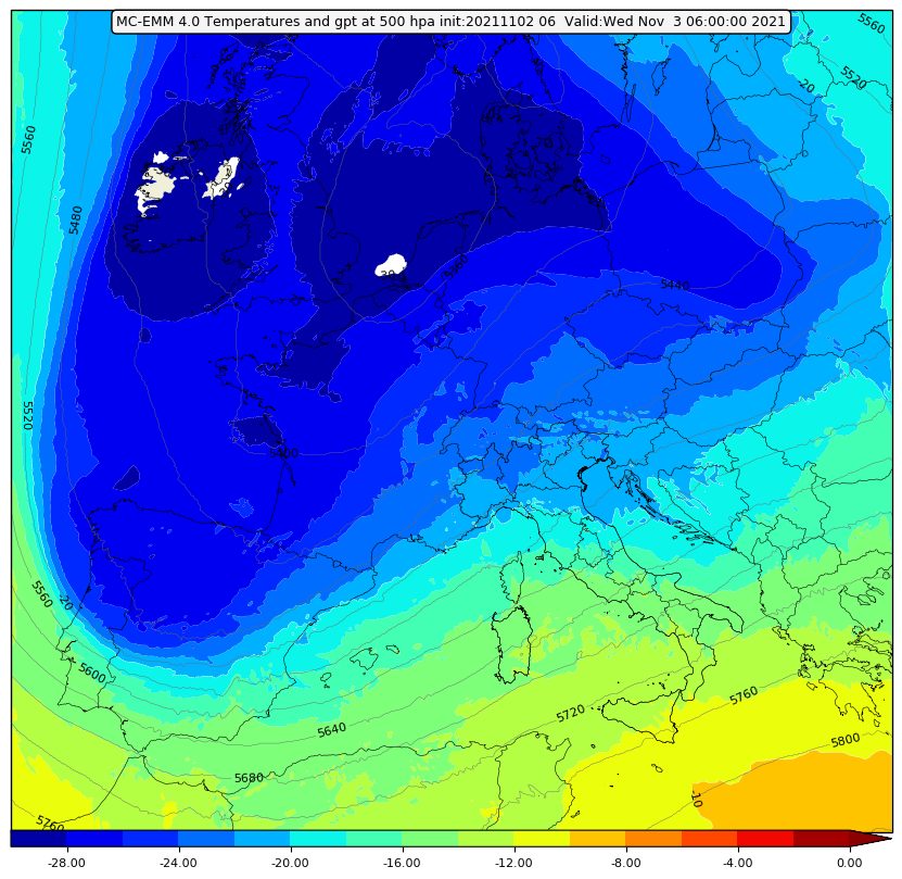 Flusso principale dislocato in seguito lungo i meridiani fino a raggiungere in conclusione il Mediterraneo occidentale dove continuerà ad esercitare i suoi effetti mediante dell’instabilità da una goccia fredda in isolamento alle quote superiori.