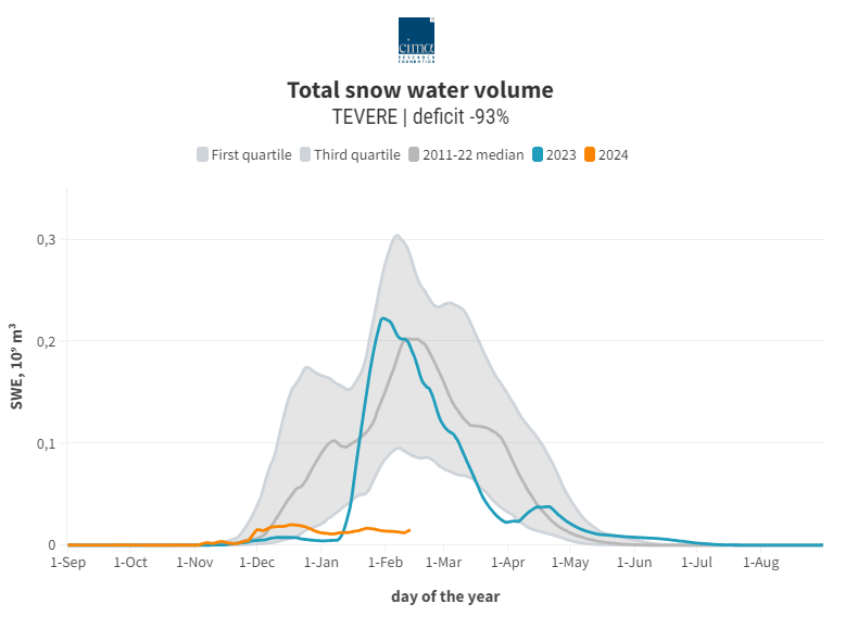 Analisi del deficit di neve e implicazioni per l’approvigionamento idrico, il report della fondazione CIMA
