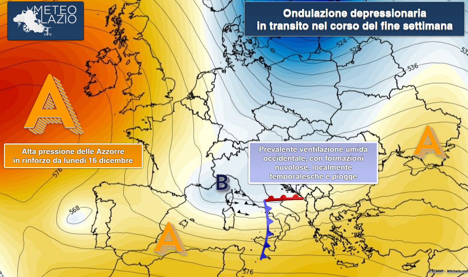 Nel corso del weekend, tuttavia, l’ammasso freddo tenderà gradualmente a ridurre la sua portata e influenza sui settori tirrenici, spostandosi verso la Penisola Iberica e parte del Nord Africa. Al suo posto si insedierà temporaneamente un promontorio di alta pressione proveniente dalle Azzorre, che porterà un moderato aumento delle temperature massime giornaliere, soprattutto all’inizio della prossima settimana. Nelle ore notturne si registreranno inversioni termiche piuttosto marcate su tutte le aree pedemontane e vallive del Lazio, in particolare nell’entroterra a nord-est di Roma (valli del Ferentino, Ciociaria e Frusinate), dove da lunedì 16 dicembre non si escludono gelate.