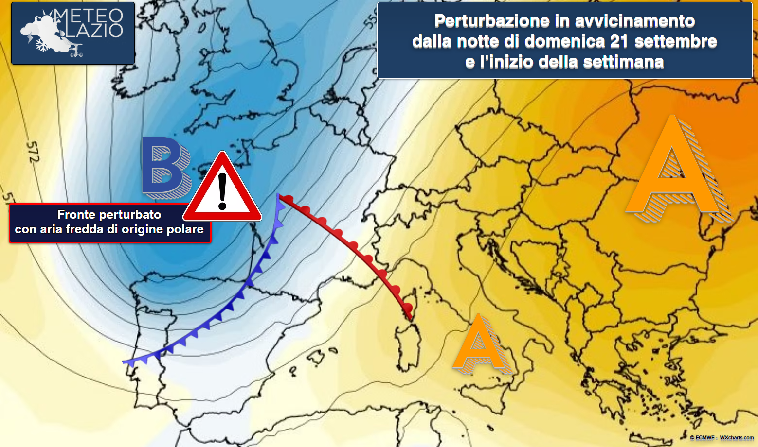Prosegue lo stazionamento di un modesto promontorio di alta pressione di matrice subtropicale tra il Mediterraneo occidentale e l’Europa orientale. Nel frattempo, una figura di bassa pressione colma di aria più fredda, di estrazione polare, si avvicinerà entro il fine settimana tra Francia e Spagna, dando avvio a una nuova fase perturbata e tipicamente autunnale tra la serata di domenica e la giornata di lunedì 22 settembre.