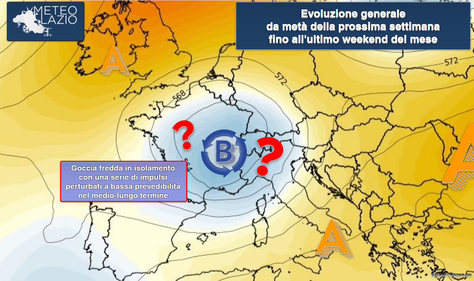 La situazione rimarrà piuttosto incerta, divisa tra i deboli rinforzi dell’alta pressione e la presenza di residue figure perturbate sull’Europa occidentale. Alcune di queste perturbazioni potrebbero in parte interessare anche l’Italia, determinando giornate spesso nuvolose e piovose, tipicamente autunnali, alternate a temporanei sprazzi di tempo più stabile e soleggiato.