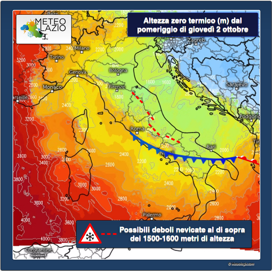 Qualche fiocco da sfondamento potrà inoltre intravedersi tra mercoledì notte e giovedì mattina oltre i 1800 metri di altitudine sul comparto subappenninico laziale, con accumuli pressoché nulli e/o irrisori.