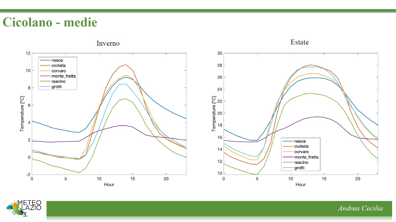 I dati raccolti negli ultimi anni evidenziano come, in condizioni di stabilità atmosferica e cielo sereno, le valli del Cicolano sperimentino forti inversioni termiche notturne: l’aria fredda, più densa, ristagna nei fondovalle, mentre i versanti e le vette restano più miti.