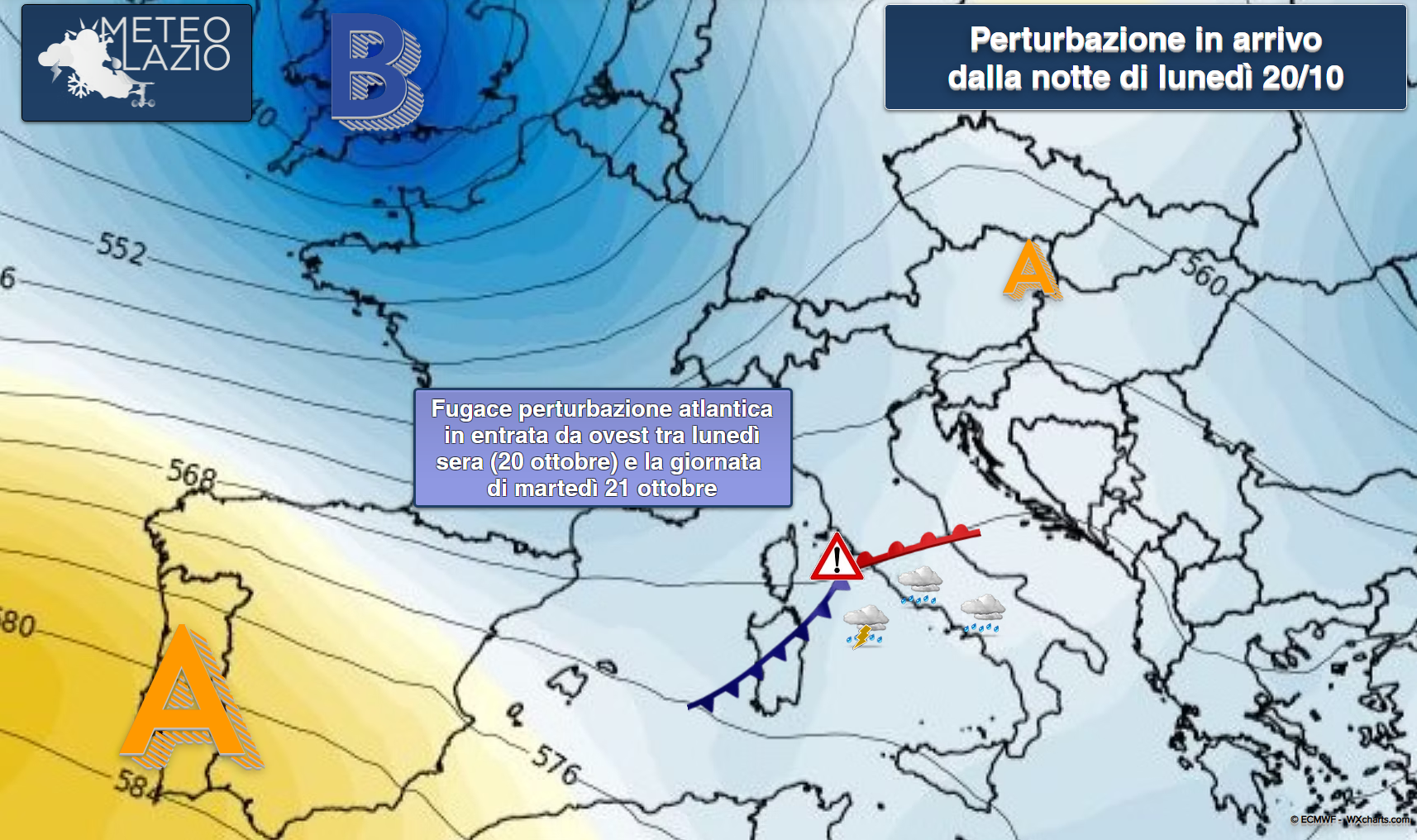 Dalla serata di lunedì 20 si assisterà a un rinforzo della ventilazione di Scirocco da sud-est, in attesa di un fronte freddo in arrivo sulle regioni centrali tirreniche nella giornata di martedì 21 ottobre.