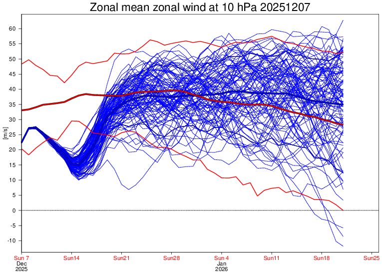 Il vortice polare stratosferico andrà rinforzandosi nel corso del mese, ma rimanendo sempre abbastanza vicino alla media o poco al di sopra nella seconda parte (Immagine 3).