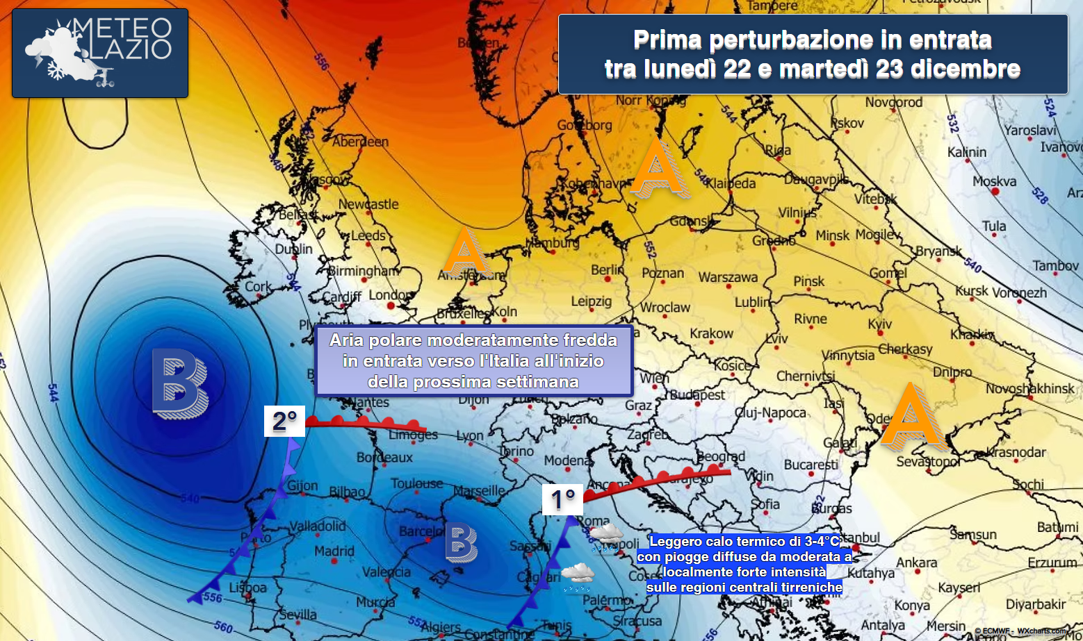 Come confermato dagli ultimi aggiornamenti modellistici, l’alta pressione dal nord Africa, già instabile, entro la Vigilia di Natale (mercoledì 24 dicembre) risulterà ulteriormente indebolita a causa della prima frattura indotta dalla precedente perturbazione.