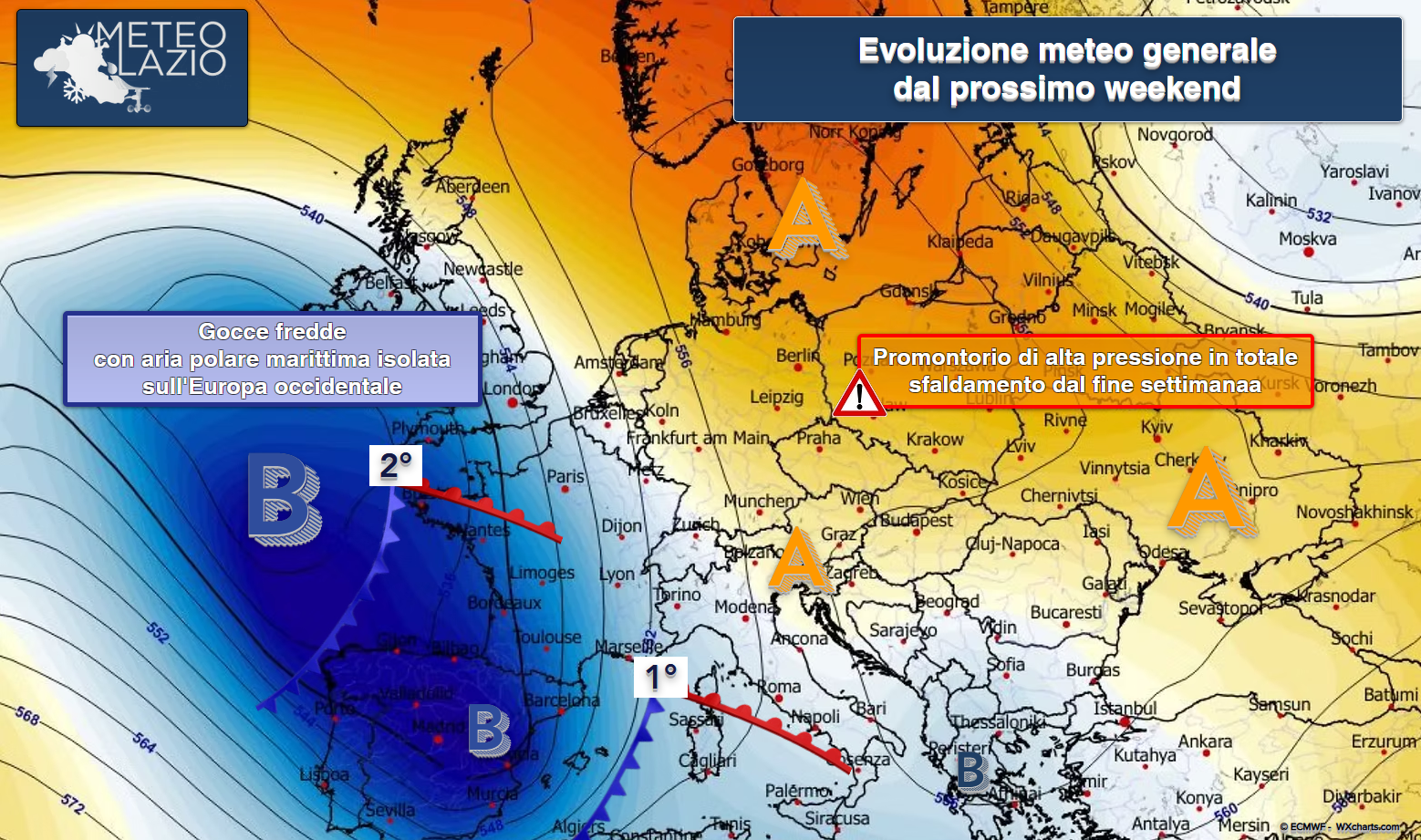 Il tutto dipenderà dalla stazionarietà dell’anticiclone di blocco in sede all’Atlantico e da quanto effettivamente il corridoio di aria artica continentale rimarrà aperto.