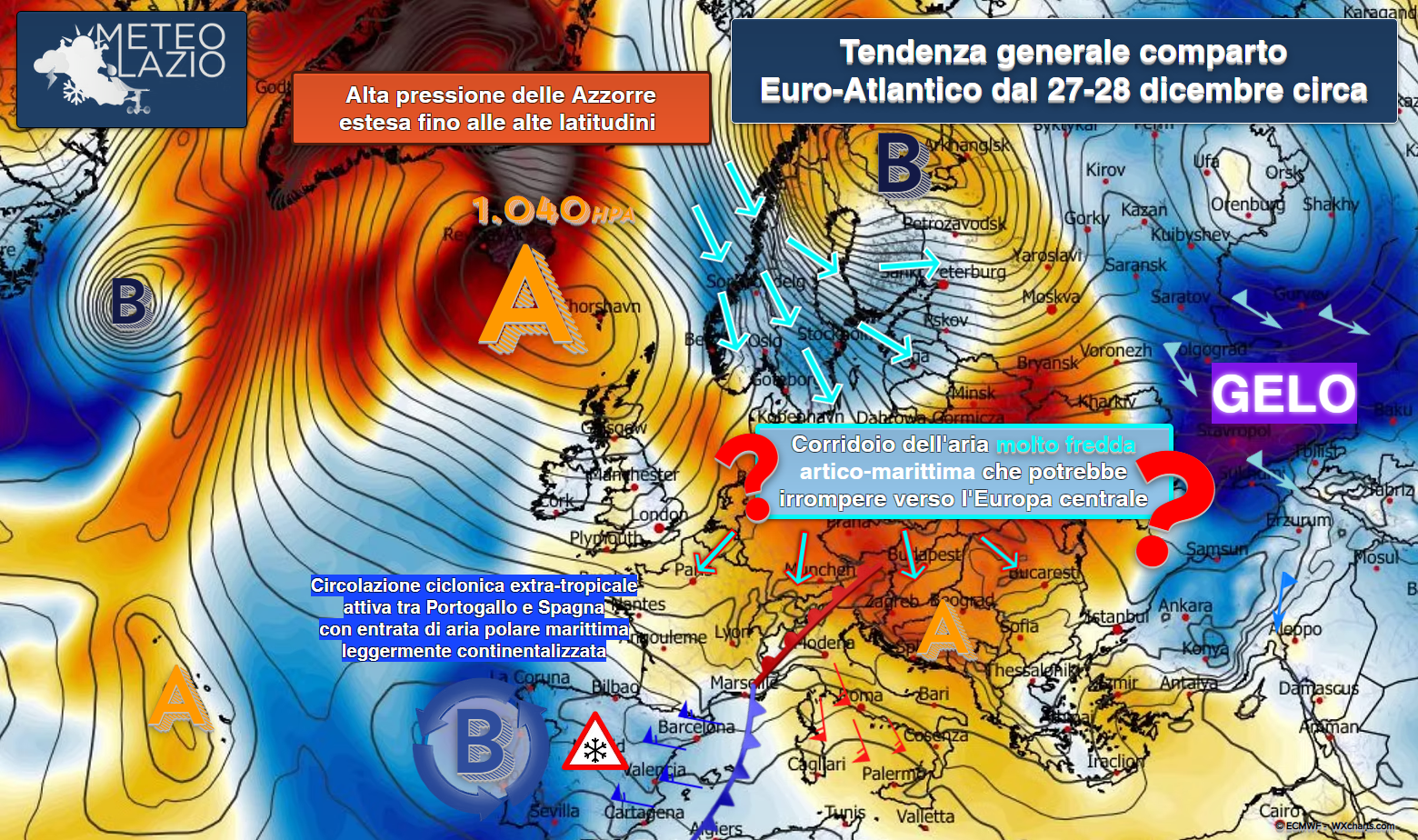 Tale dinamica risulterebbe più evidente durante la prossima settimana, tra il 27 e 28 dicembre, con possibili effetti più diretti sull’Europa centrale nell’ultimo weekend del mese.