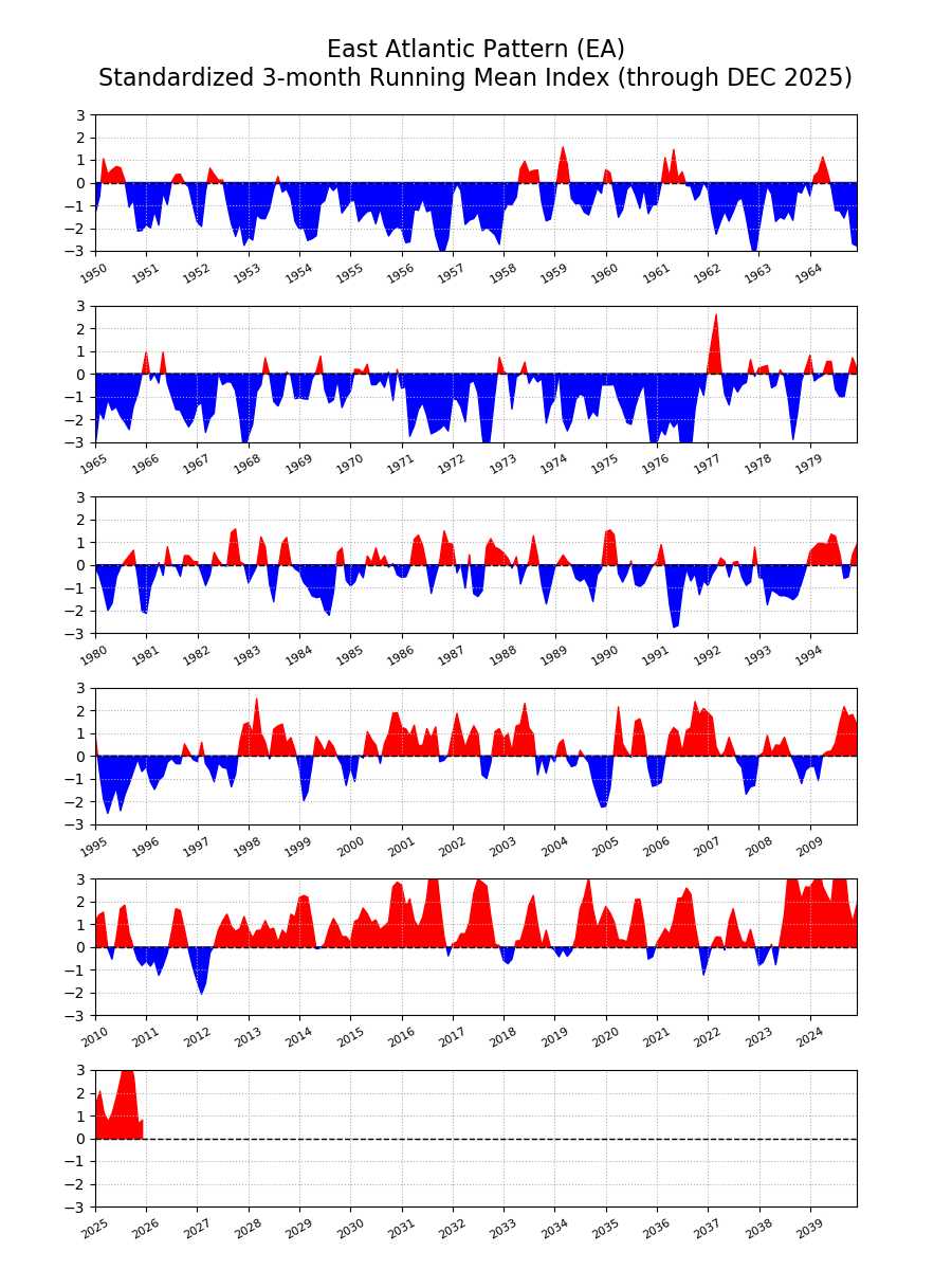 Immagine 1: continua la progressione positiva multidecennale dell’EA, segno di circolazioni cicloniche potenti sulle isole britanniche che portano aria tropicale atlantica sull’Italia