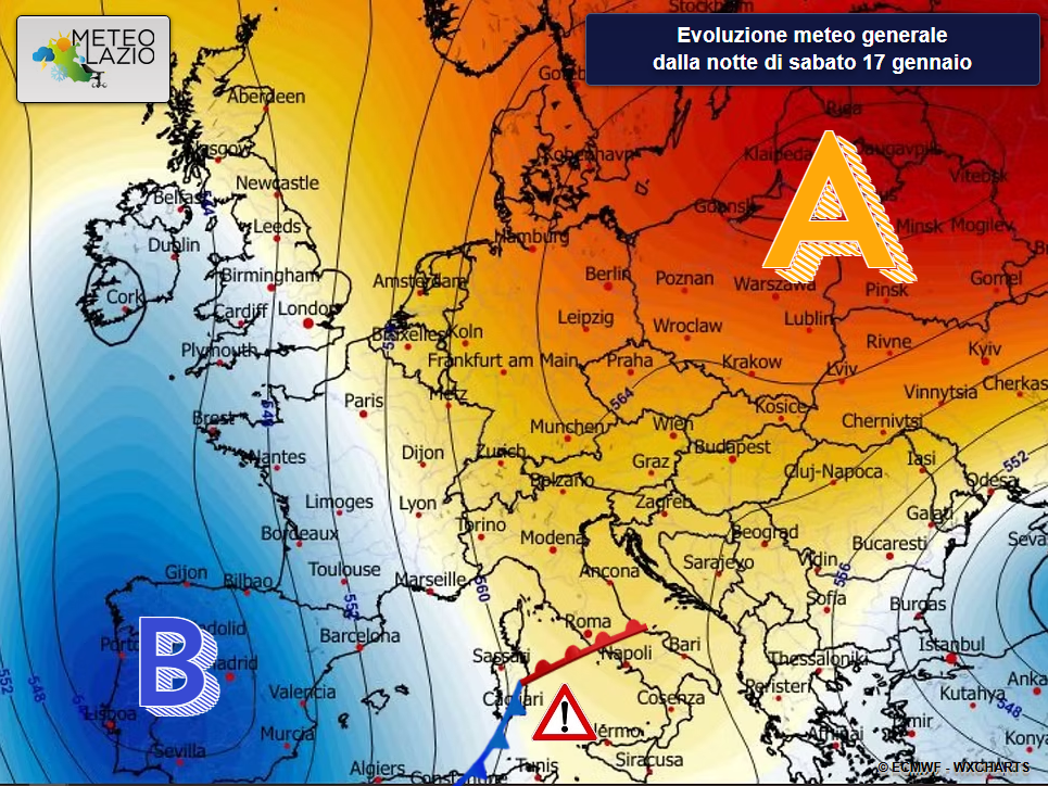 Non è tuttavia da escludere un maggiore affondo orientale dell’aria polare marittima attualmente collocata tra l’Atlantico e la Penisola Iberica, la quale potrebbe traslare verso il Mediterraneo entro il prossimo weekend, favorendo l’ingresso di una nuova perturbazione in direzione dell’Italia.