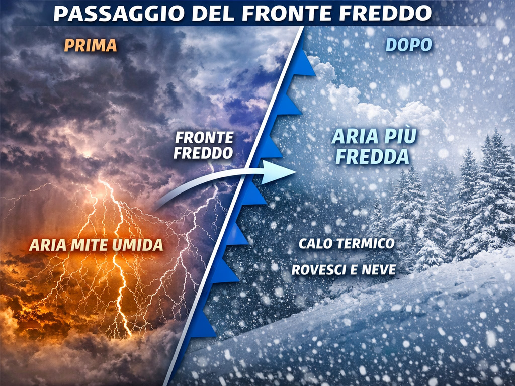 Il passaggio del fronte freddo porterà fenomeni intensi e nevicate a quote più basse in montagna sul Lazio
