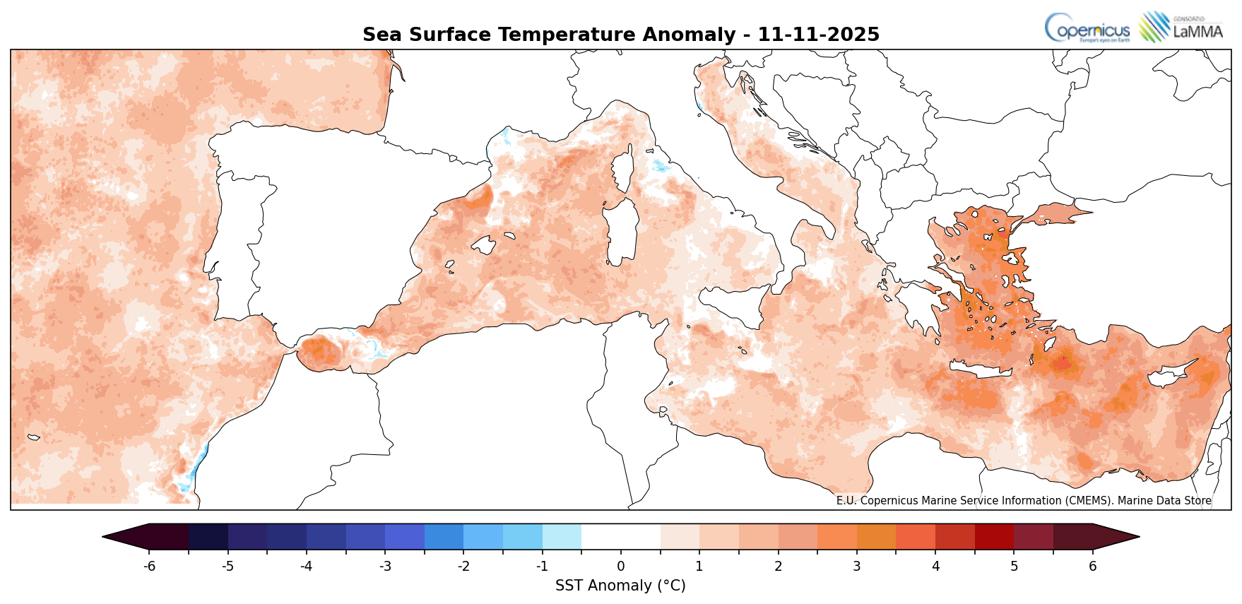 Anomalie di Temperatura Superficiale del Mar Mediterraneo